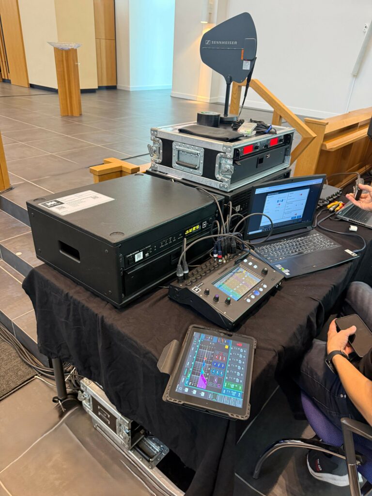 Tijdens het gehele evenement bleef ons team actief aanwezig bij het regiemeubel, zodat we direct konden inspelen op onverwachte situaties – zoals het handmatig activeren van microfoons wanneer dat nodig was.