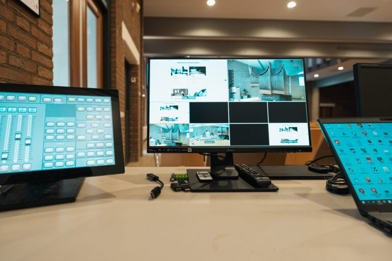 De camera’s die zijn opgehangen zorgen ervoor dat er, zonder enige onderbreking in de stream, van camerapositie gewisseld kan worden. Wesotronic AV Solutions heeft in de geluidskast apparatuur geïnstalleerd die door middel van een tablet ervoor zorgt dat al het beeld en geluid in de kerk naar wens werkt.